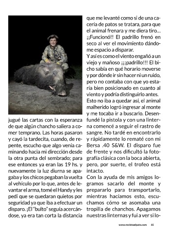 disparo. ¡El “bulto” seguía acercán- tropilla de chanchos. Apagamos