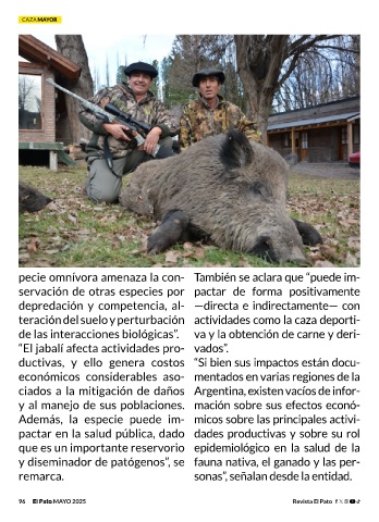 pecie omnívora amenaza la con- También se aclara que “puede im-