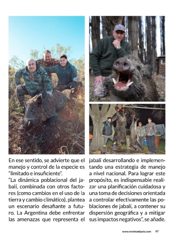 un escenario desafiante a futu- blaciones de jabalí, a contener su