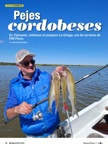 PESCA DE PEJERREYES Pejes cordobeses En Viamonte, visitamos el pesquero La Gringa, con los servicios de Mili Pesca. Por Eduardo Gambini 98 MAYO 2025 Revista El Pato