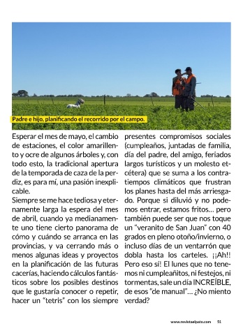de la temporada de caza de la per- cétera) que se suma a los contra-