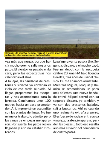 patos. El viento nos pegaba en la Fue mi debut con la escopeta
