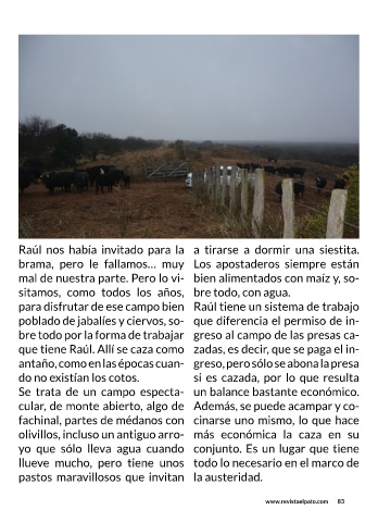 que tiene Raúl. Allí se caza como zadas, es decir, que se paga el in-