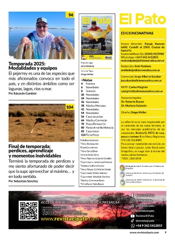 Terminó la temporada de perdices y *Pesca Pejerrey: Eduardo Gambini * ISSN: 1514-2434