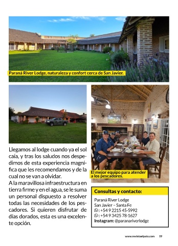 todas las necesidades de los pes- Paraná River Lodge