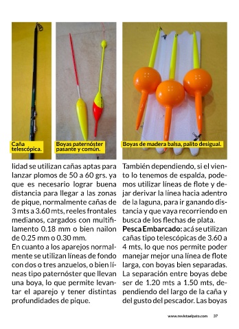 de pique, normalmente cañas de de la laguna, para ir ganando dis-