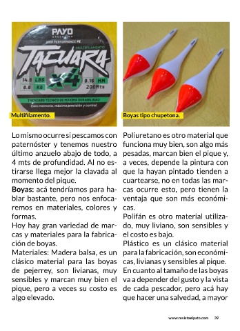 de pejerrey, son livianas, muy En cuanto al tamaño de las boyas